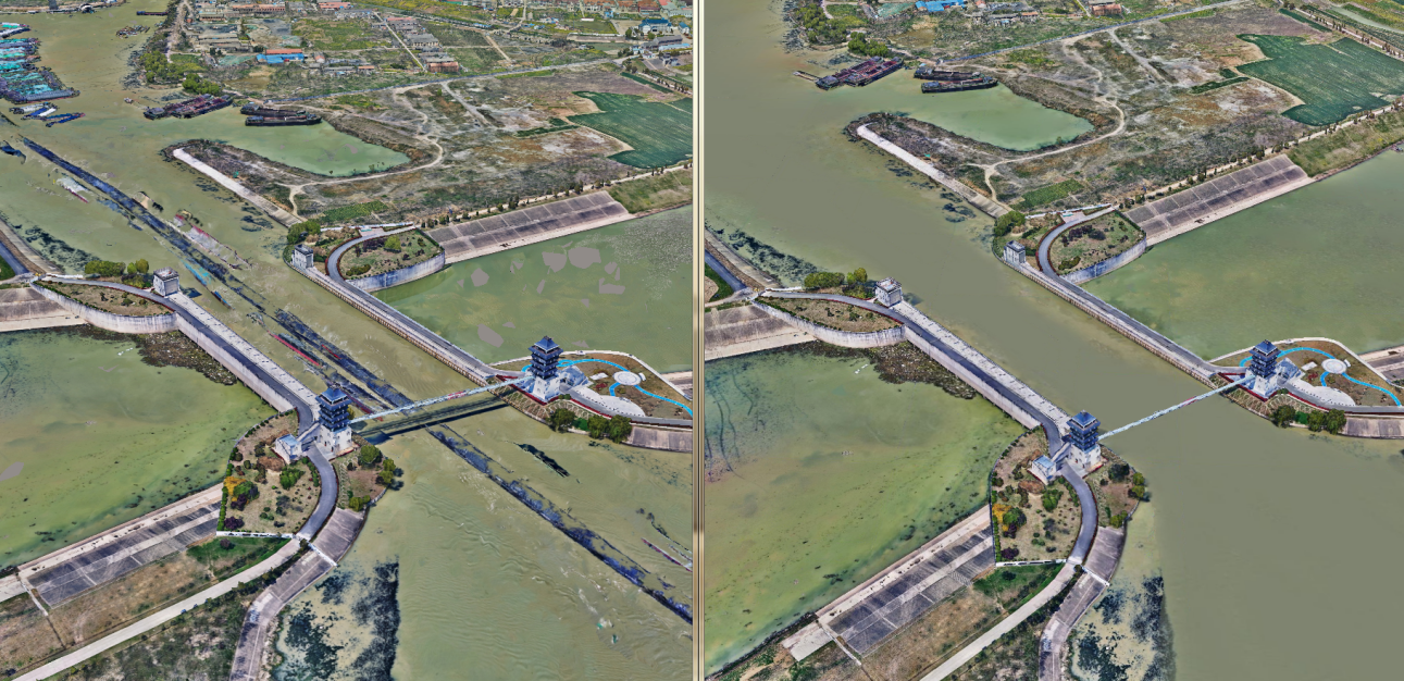 為保證成果的美觀性,飛燕遙感首次采用了水域批量處理技術(shù)。在模型人工修飾環(huán)節(jié)完成后,由專人進(jìn)行水域批量處理,保證了水域高程一致或平緩過渡,水面紋理整潔,色彩過渡自然,體現(xiàn)了飛燕品牌的“高科技”與“高品質(zhì)”。