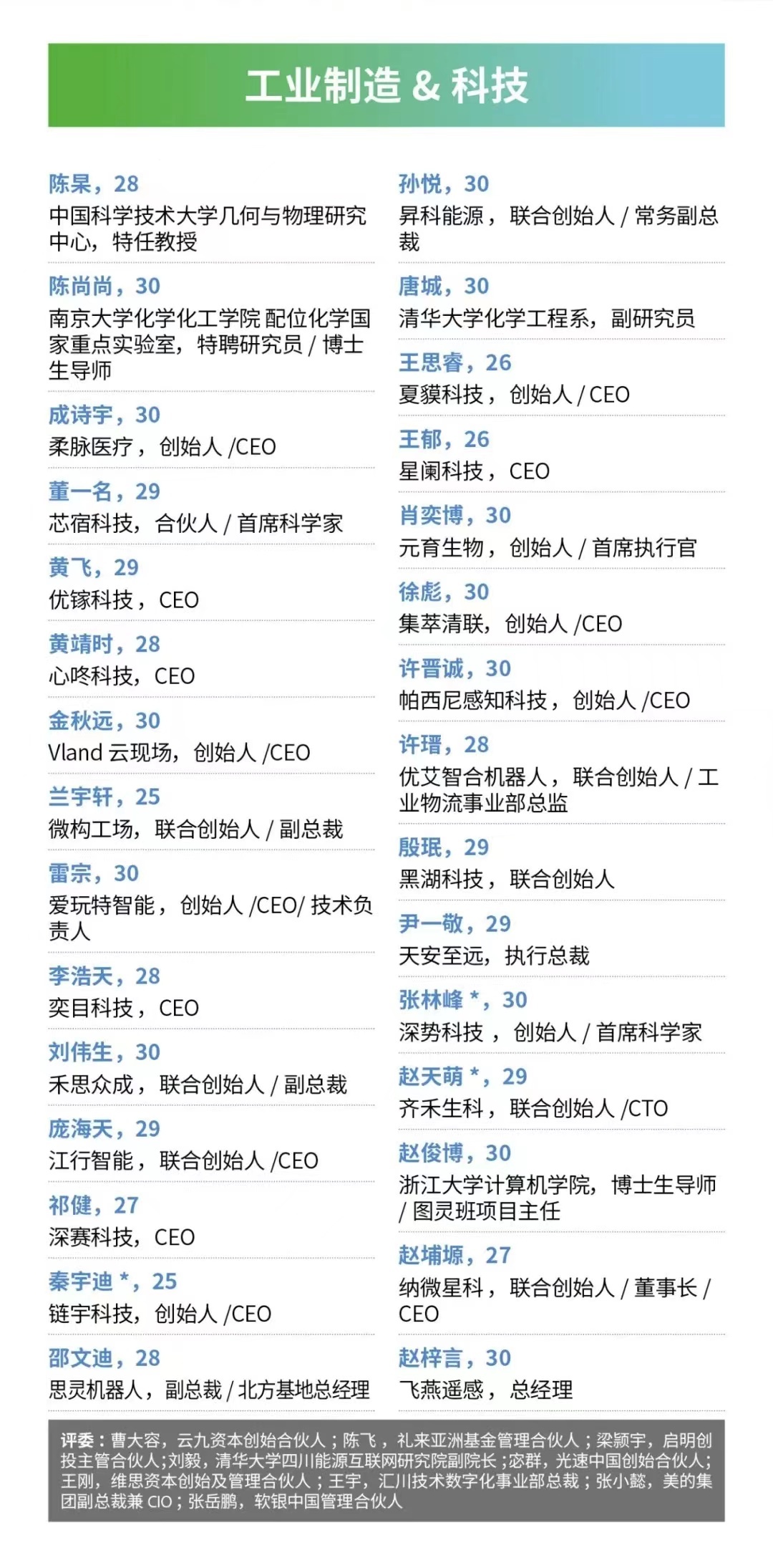福布斯一貫以前瞻性的目光,尋找那些30歲以下,在業(yè)內(nèi)嶄露頭角,或者展現(xiàn)出成為未來行業(yè)及社會翹楚的潛在力量。