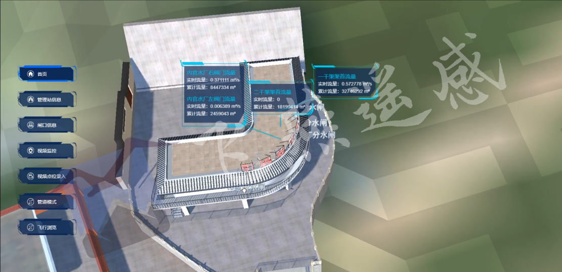 三維配水供水運維管理系統,基于BIM數據,通過三維引擎仿真渲染后,以三維場景直觀展示配水供水運維工程;并將實時獲取的各類運行數據標注在工程的局部三維模型上,為配水供水調度提供大數據分析決策服務。