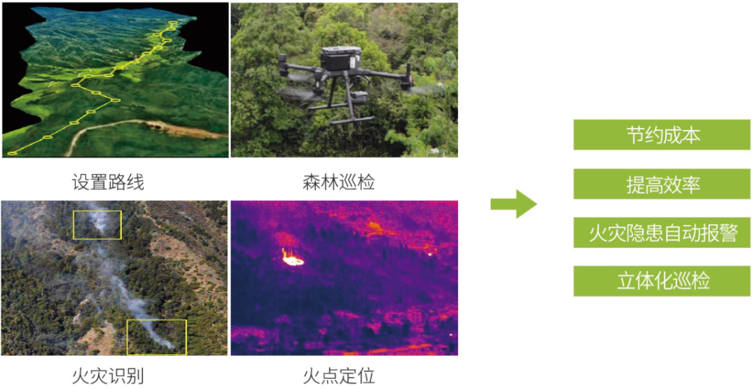 無人機巡檢可有效保證人員安全,降低人工成本,減輕運維壓力,提升工作效率;同時彌補人工巡檢隱患排查效率低、覆蓋率不足、問題處理不及時等問題,實現對重點風險點提前預警、及時上報,有效減少火情造成的損失。