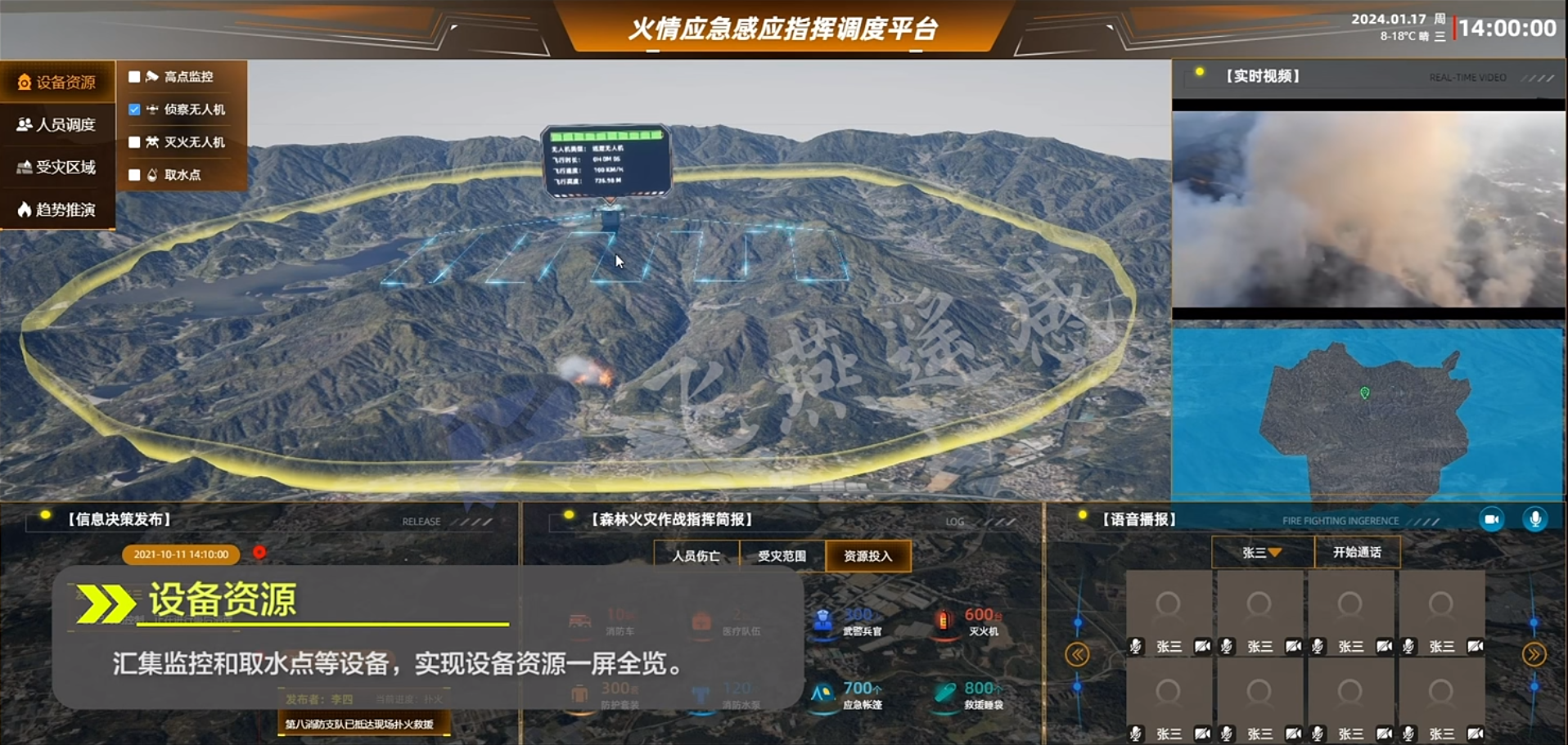 火情偵查:火情發生時,利用無人機的紅外探測設備可快速精確定位火點的坐標,并提供應急測繪服務,快速生成數字正射影像圖等數據,為地面消防部門第一時間提供火場地理坐標。當無人機在火場上方時,還可將火場的數據實時傳回地面控制中心,使滅火指揮部門迅速有效地組織、部署滅火隊伍,提高滅火作戰效率,防止救火人員的傷亡。現場實時的圖像資料也可為消防人員提供最佳撤離路徑。