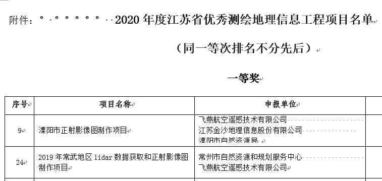 飛燕遙感榮獲2020年度江蘇省優(yōu)秀測(cè)繪地理信息工程一等獎(jiǎng)!